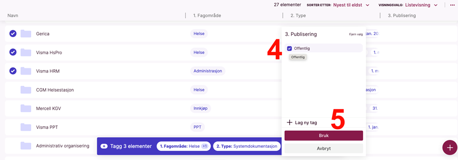 Markering av innhold som skal publiseres offentlig gjøres ved å tagge innholdet med “Offentlig”-taggen. Dette gjøres på følgende måte: