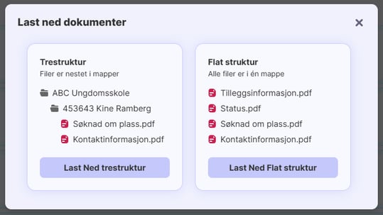 For å laste ned en zip-fil med alle dokumentene i et utvalg, gjør først en filtrering av dataene du ønsker. På Dokumenter-fanen huk av for alle (bruk Merk alle hvis det er flere sider), og gå så til Start masseoppdaterings-menyen.