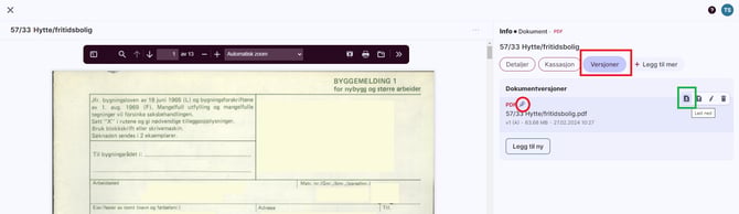 Merk at om du benytter nedlastingsikonet i visningsbildet vil det alltid være originalversjonen du laster ned. |