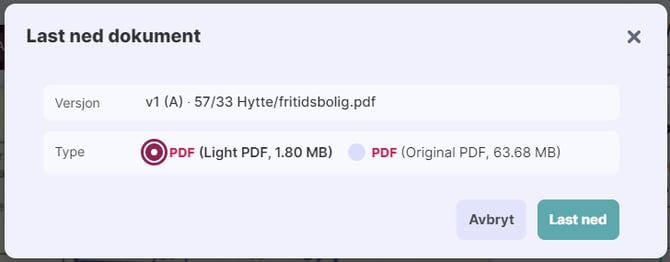 Du får da valget om du vil laste ned Light PDF eller original: