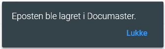 - När e-postmeddelandet har journalförts i Documaster kommer en bekräftelseruta att visas längst ner.